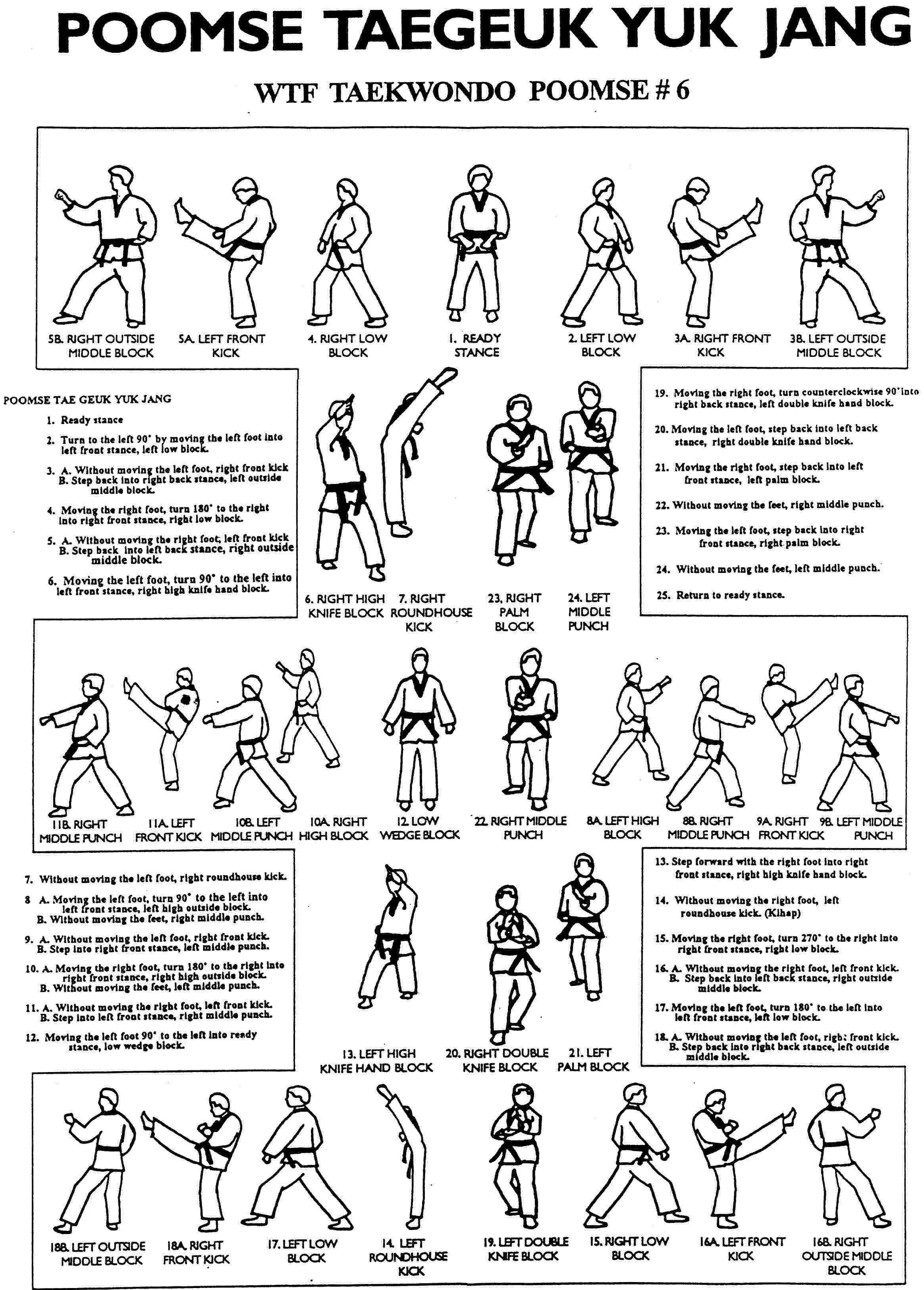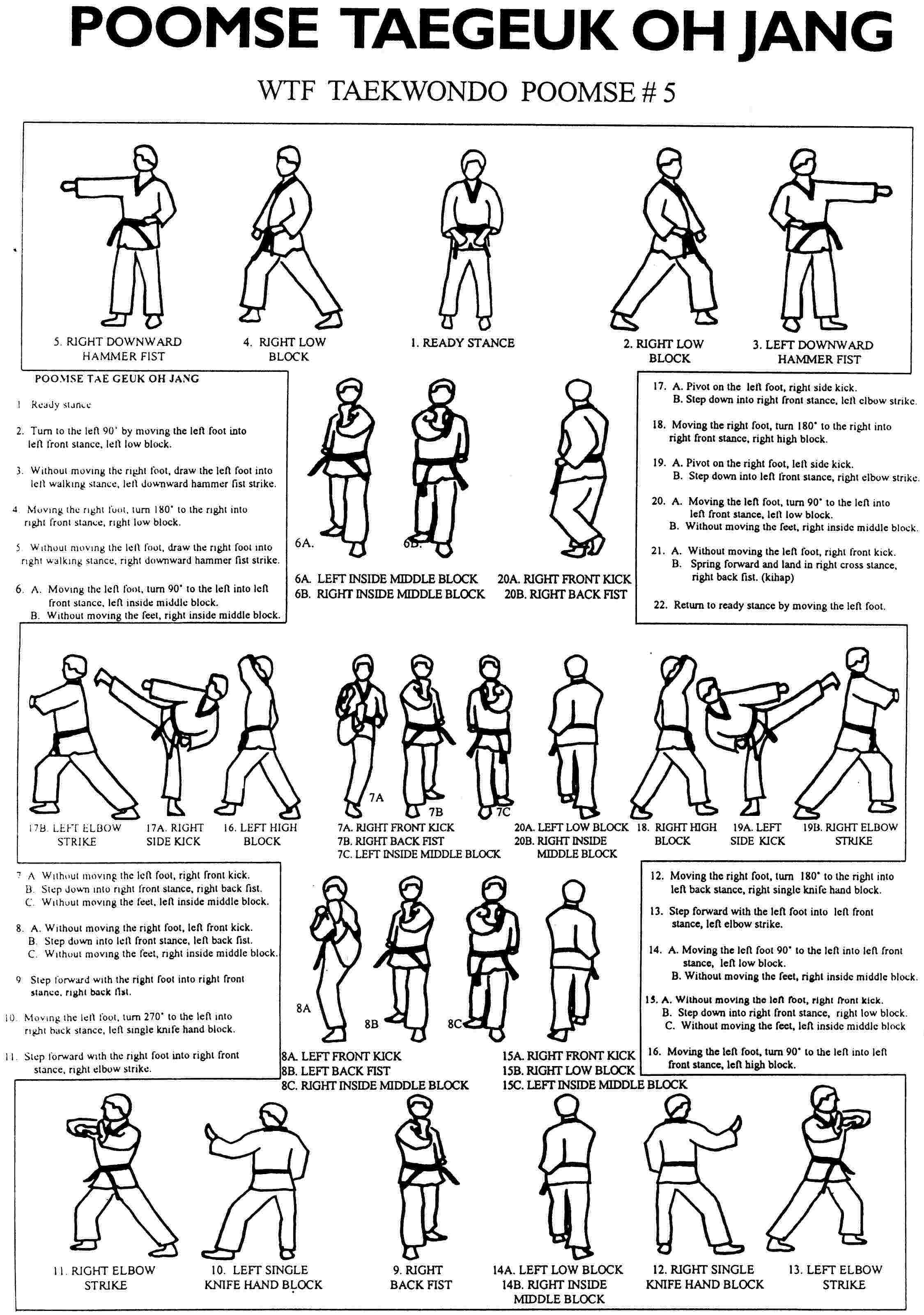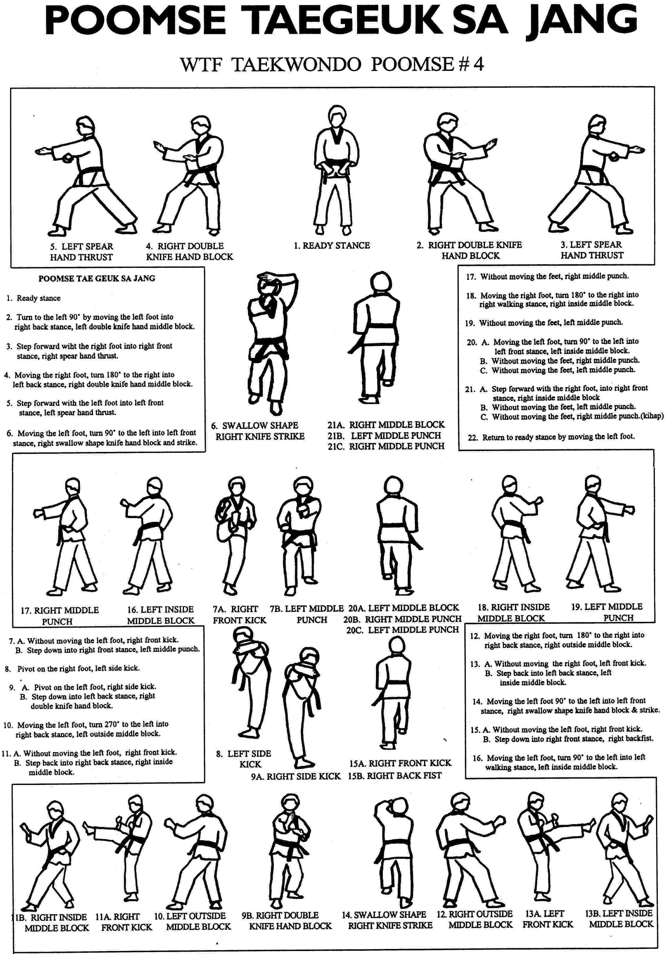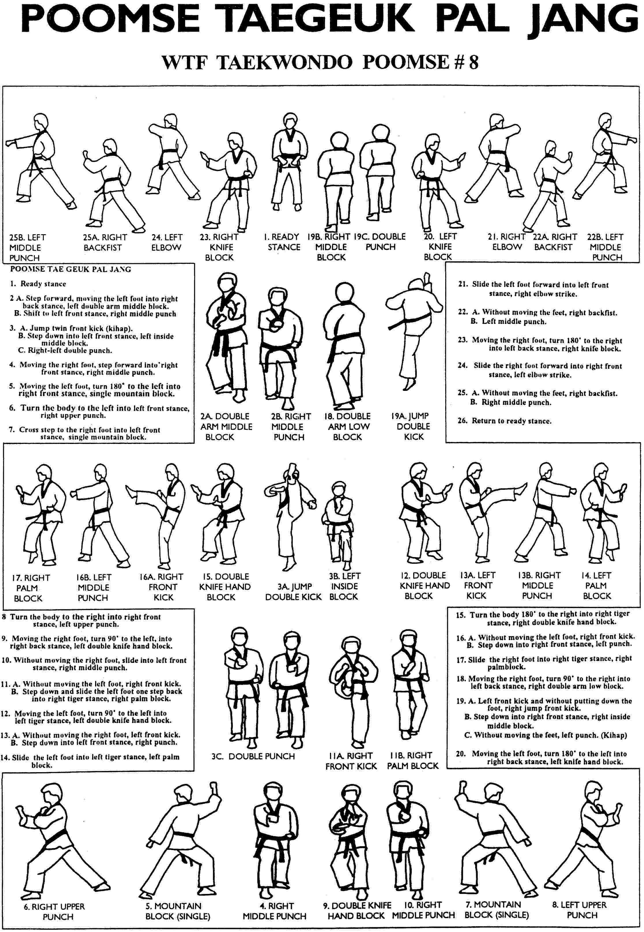 Tae Kwon Self Defense: There are eight Taegeuk Poomsae in the martial art of Taekwondo. Each Poomsae is built upon the previous one, adding more complicated movements, yet every form has unique characteristics and principles: