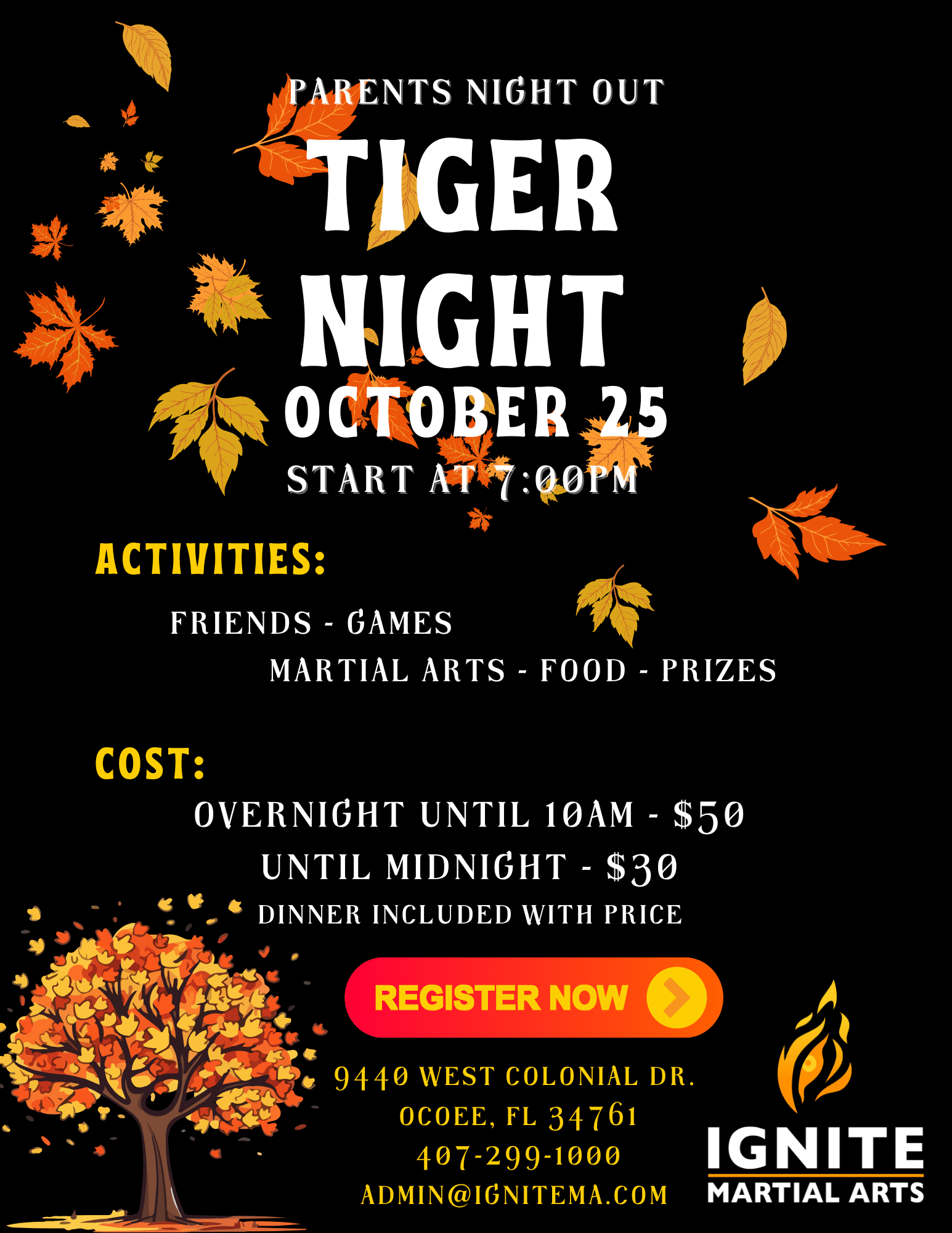 Top off the party by inviting your friends to join us! For every friend you invite that signs up for Tiger Night…you and your friend will be entered into a raffle for a fun prize. Have them mention your name at sign up to be entered into the raffle. Bring 3 new friends or more and you get to come for FREE!